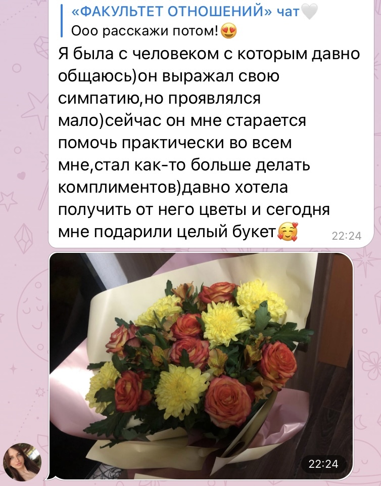 Увлекательная игра-практика, благодаря которой ты научишься взаимодействовать с мужчинами и принимать от них красивые ухаживания! А в конце победительницу ждёт приятный сюрприз от меня